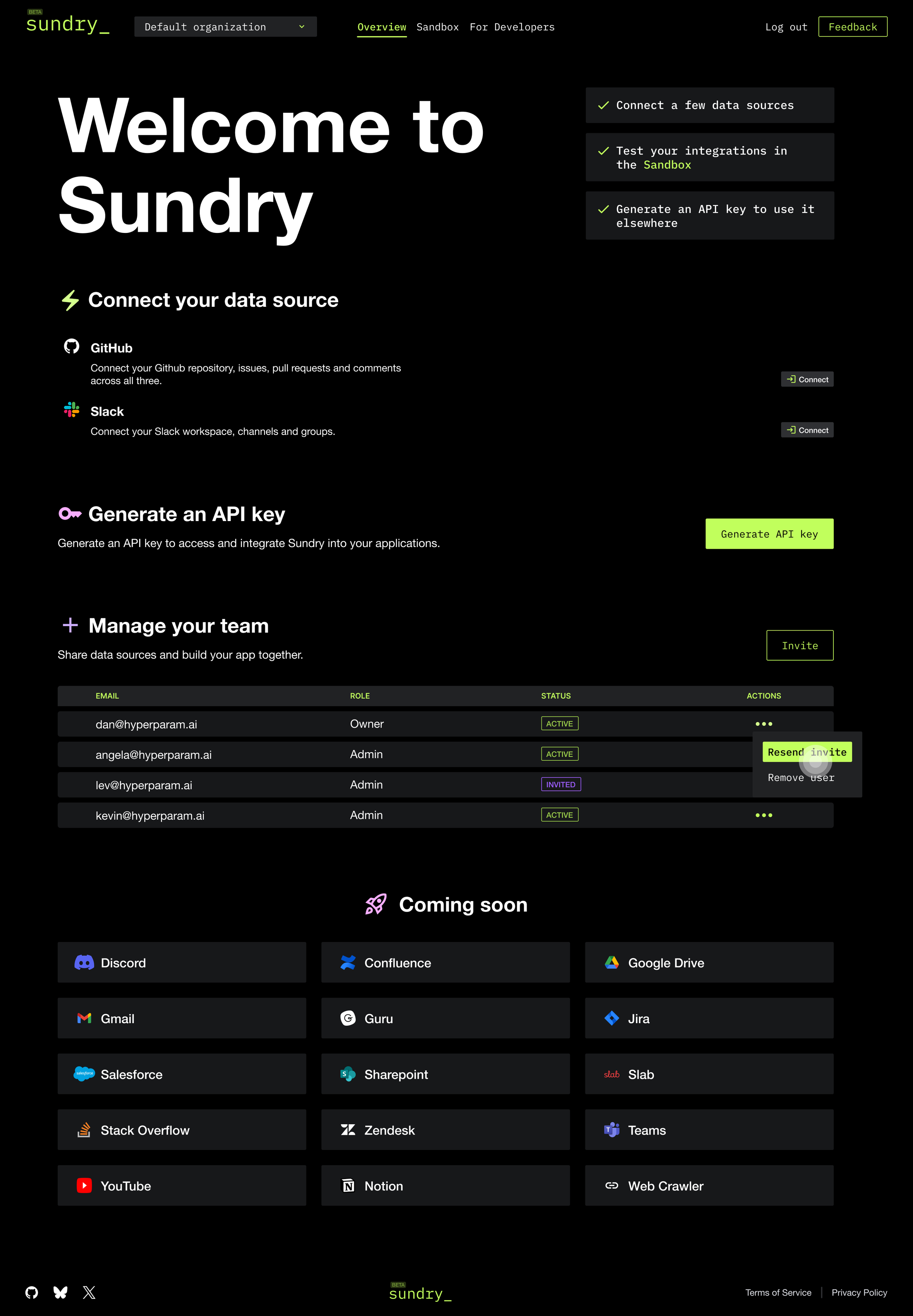 The Sandbox feature gives developers a hands-on way to explore Sundry in real-time, connecting their data and testing AI-driven insights seamlessly. By enabling instant interaction with structured responses, it simplifies onboarding and sets the stage for broader adoption.